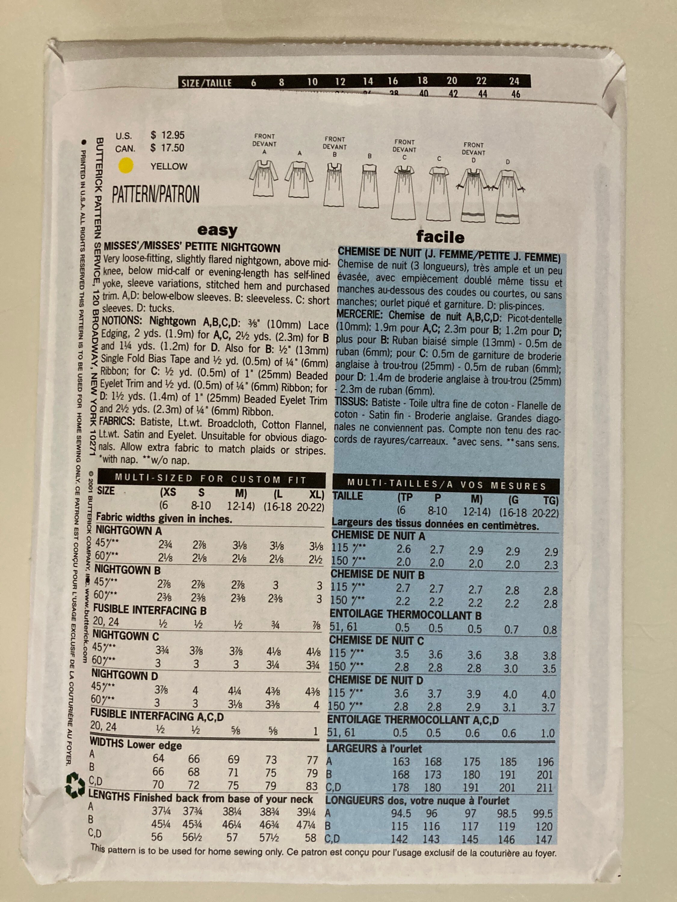 Butterick Patterns B6838 Misses Misses Petite Nightgown Size Xsm Xs S M Arts Crafts Sewing Amazon Com